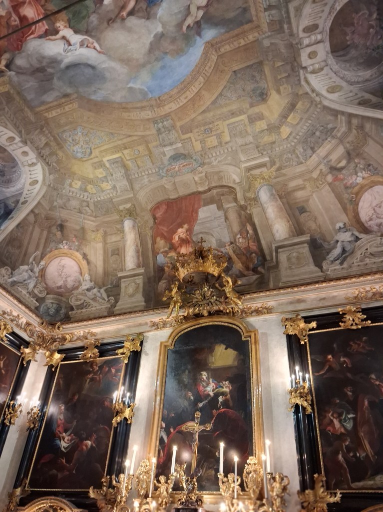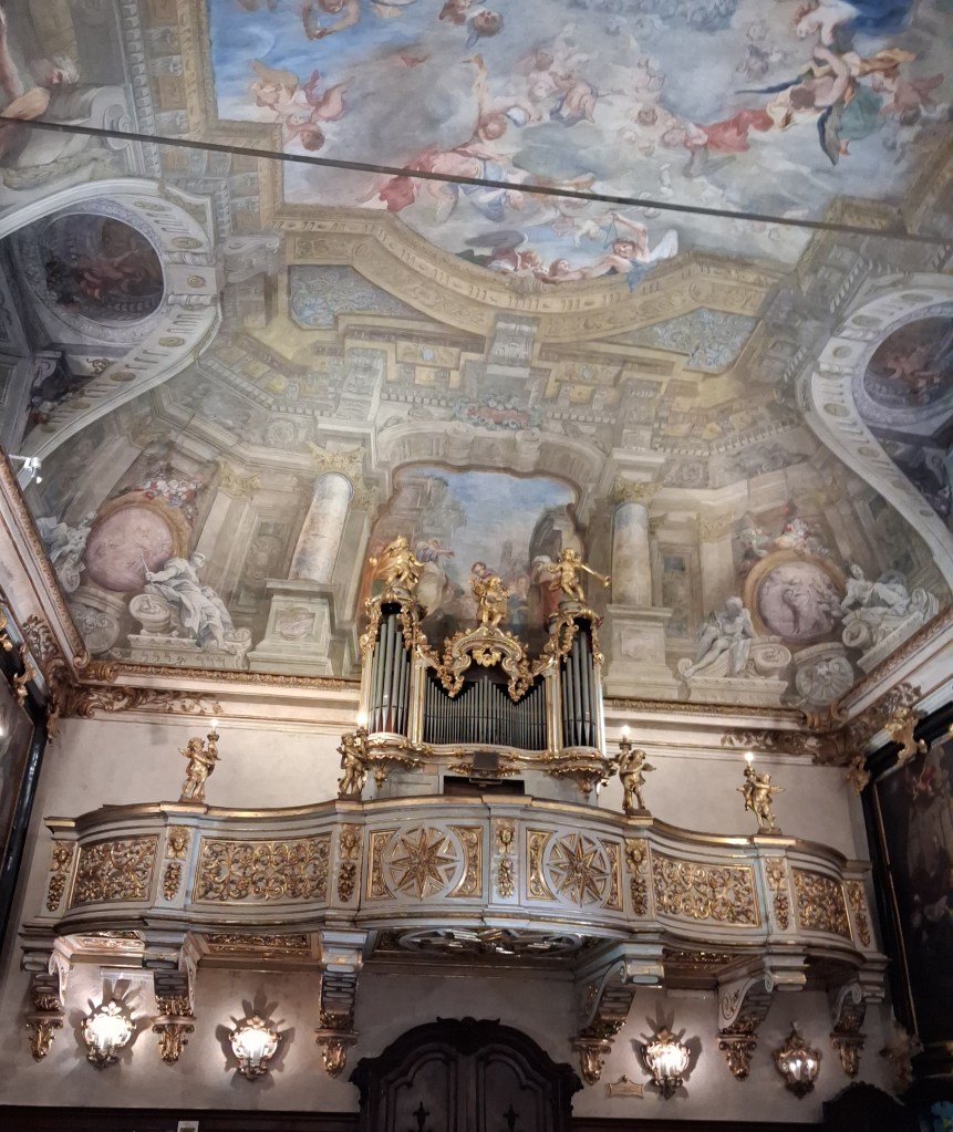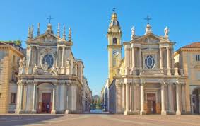 Nulla da fare…la fila era troppo lunga e non hanno potuto farci entrare. Riproveremo domani. Intanto invio le foto della CAPPELLA DEI MERCANTI DI TORINO, nome completo Cappella dei Mercanti, Negozianti e Banchieri, gioiello del barocco e per la sua acustica utilizzato anche per concerti di musica classica. Mi colpiscono sempre le Madonne circondate da pepli azzurri in tenera e attenta comunione di sguardi col figlio, azzurri come la natura divina in contrasto con la veste rossa che rimanda al terreno e all’umano. La maternità forse non ha una forte commistione di questi elementi? Al proposito, posto le foto delle Chiese di San Carlo Borromeo, gemella barocca della Chiesa Santa Cristina. L’azzurro del cielo illumina l’altura della struttura e ne evoca la spiritualità.
